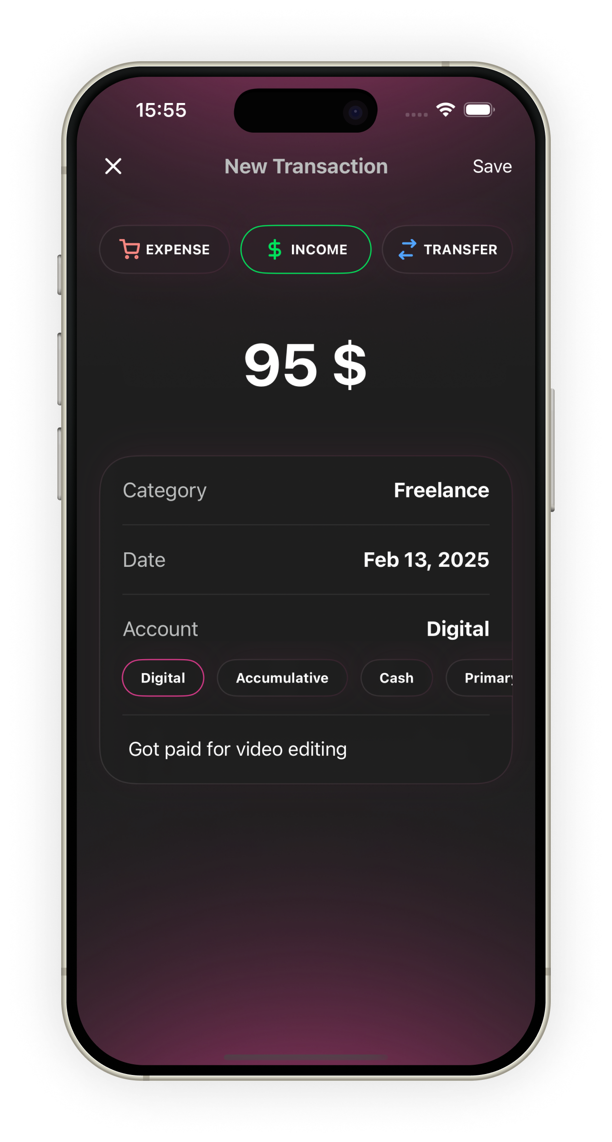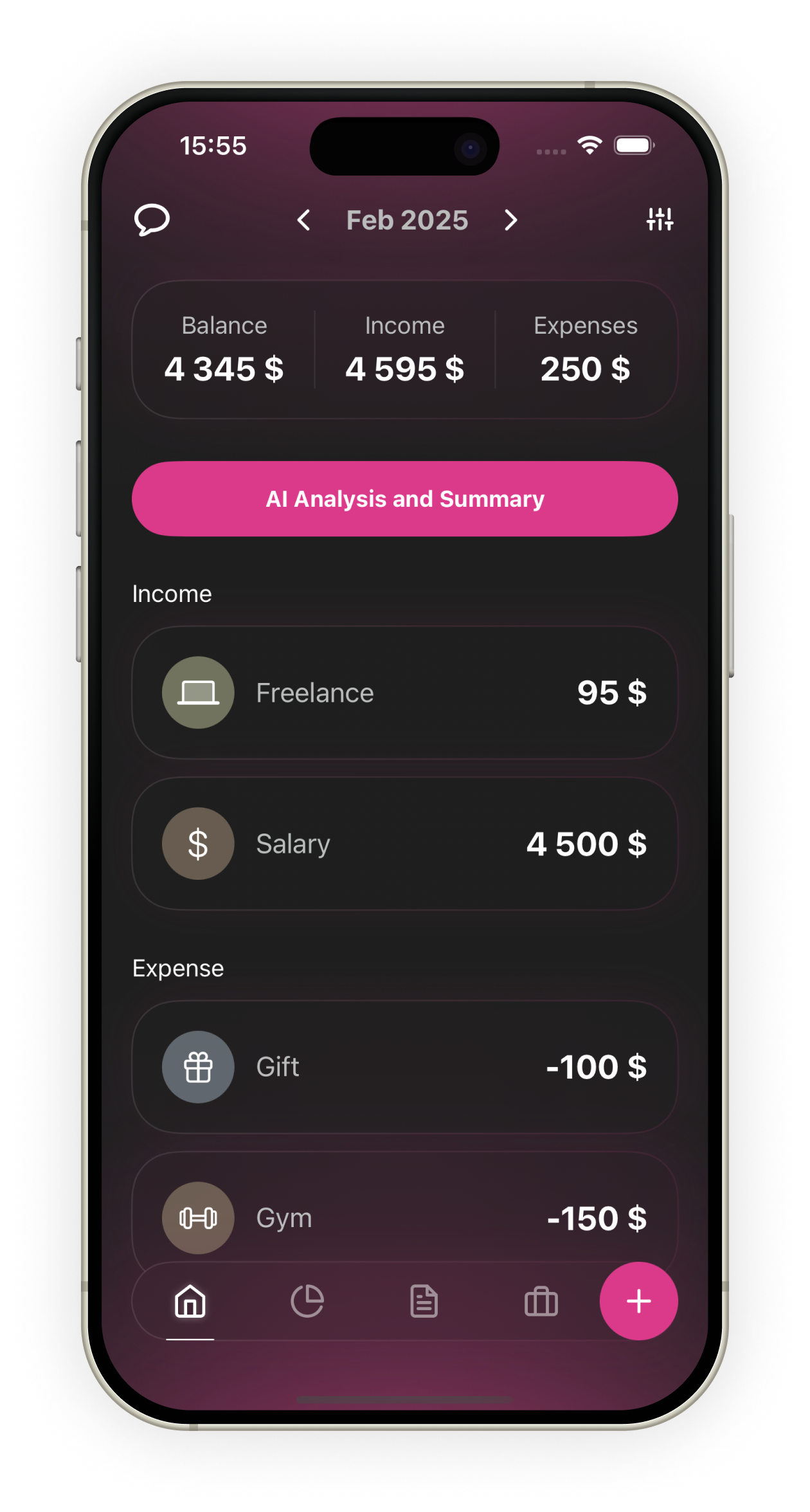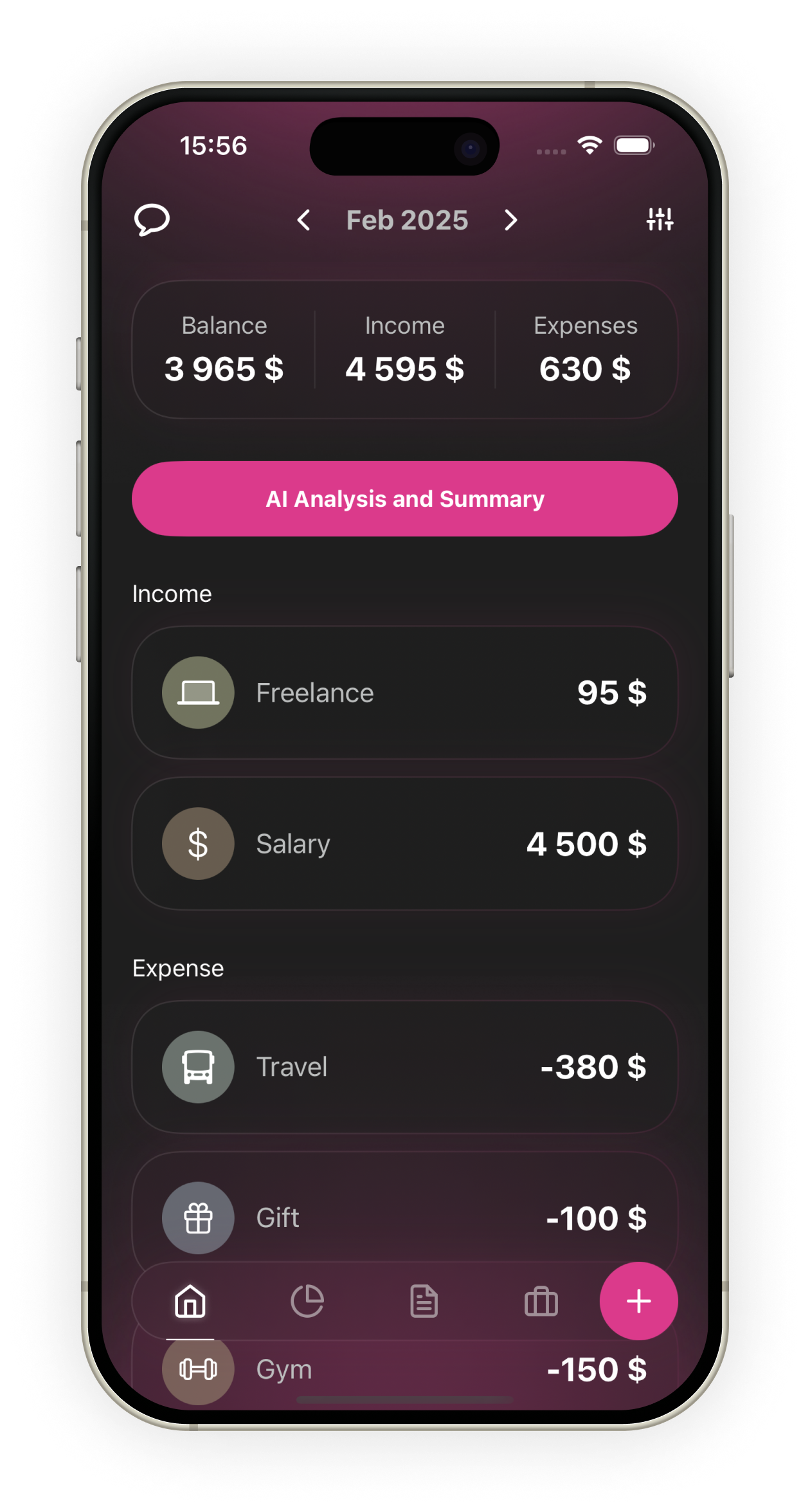Maîtrisez vos finances grâce aux catégories personnalisables, aux dépenses récurrentes et aux rappels automatiques.